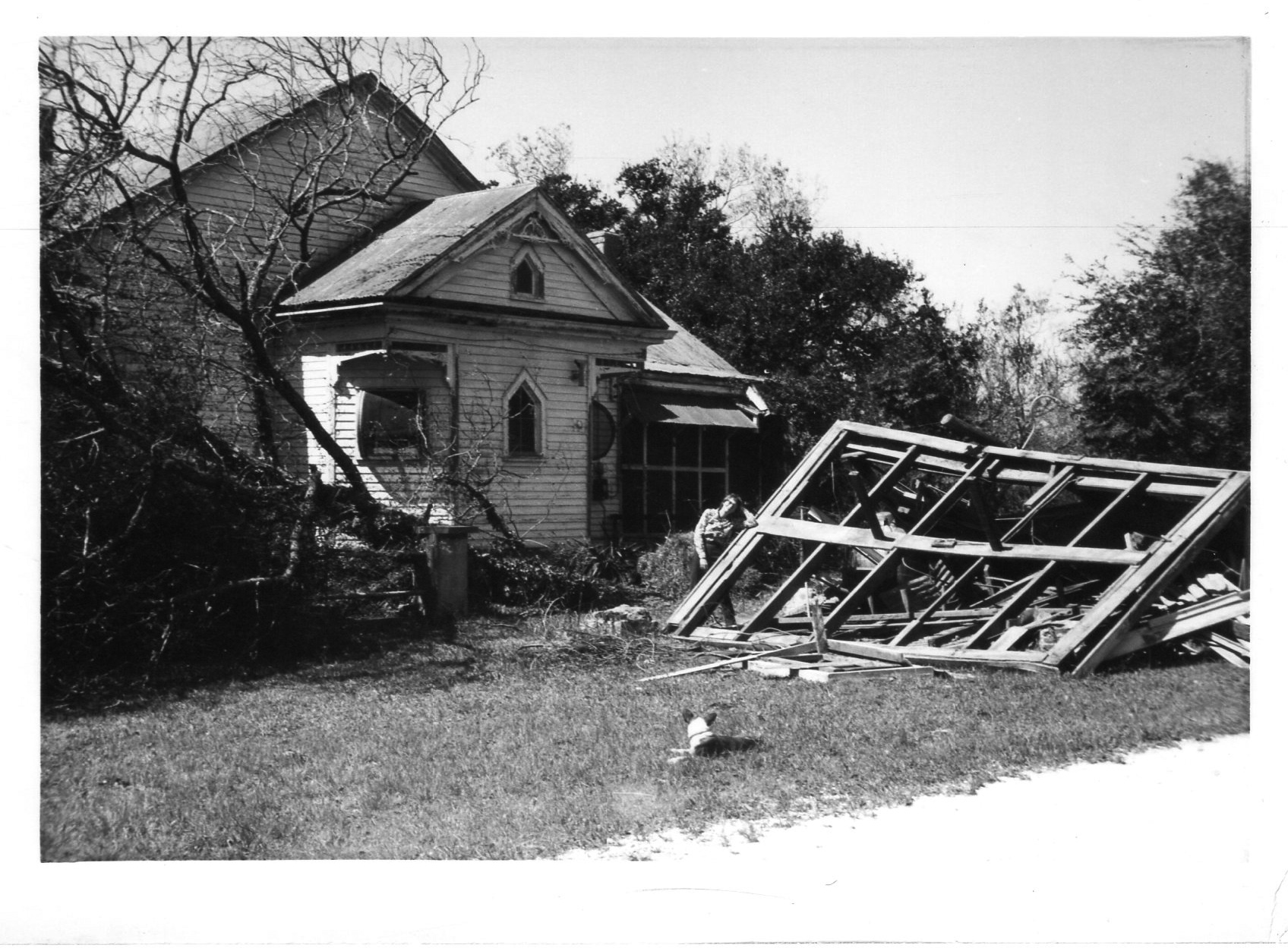 Then, Hilda changed course again and came right in our backyard. We were without power or water or telephones for two weeks.